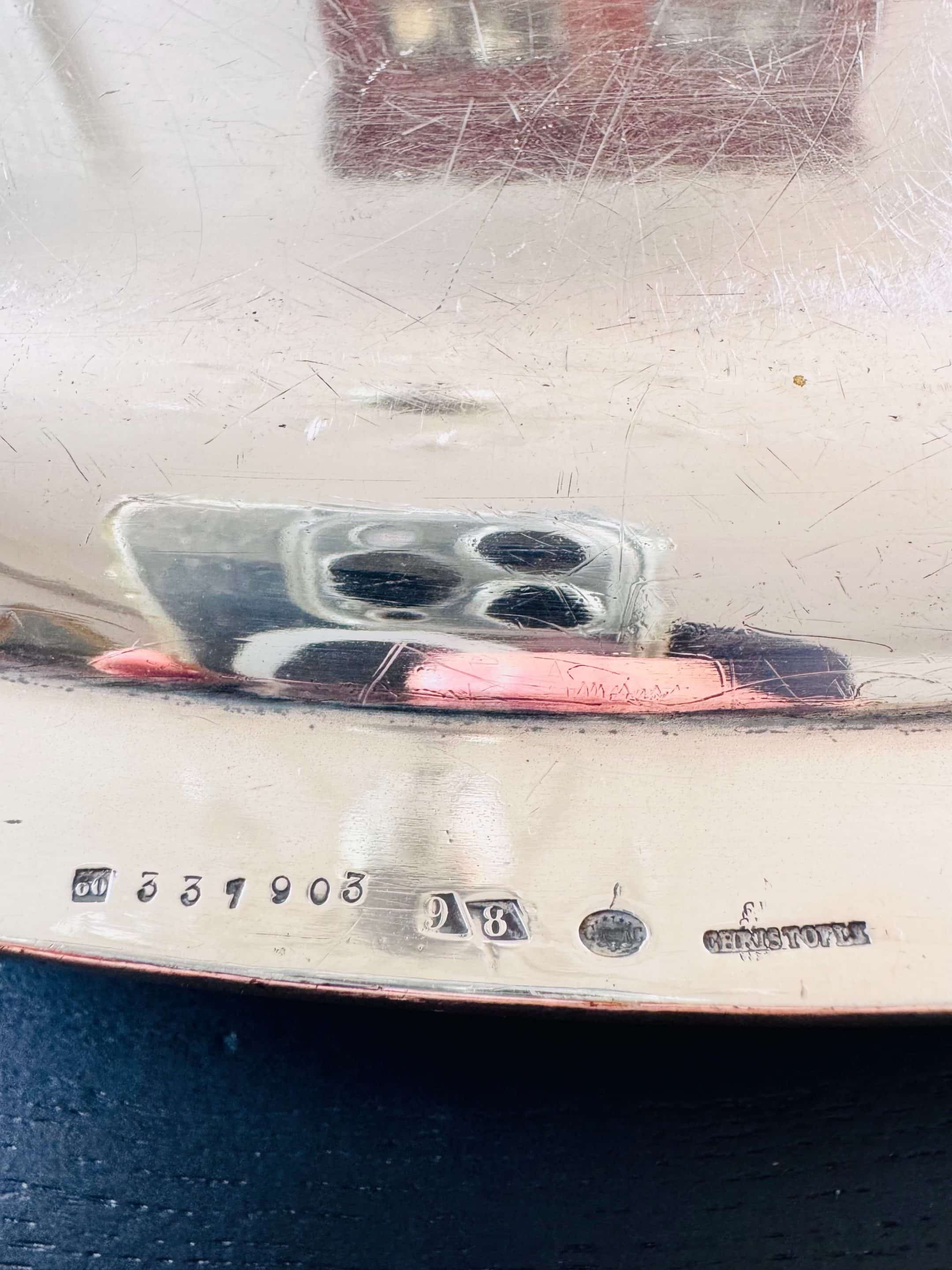 Superbe travail français de la célèbre maison Christofle, portant le numéro 331903 et le poinçon de l’orfèvre, signé en toutes lettres. Date de la fin XIXème ou début XXème siècle.