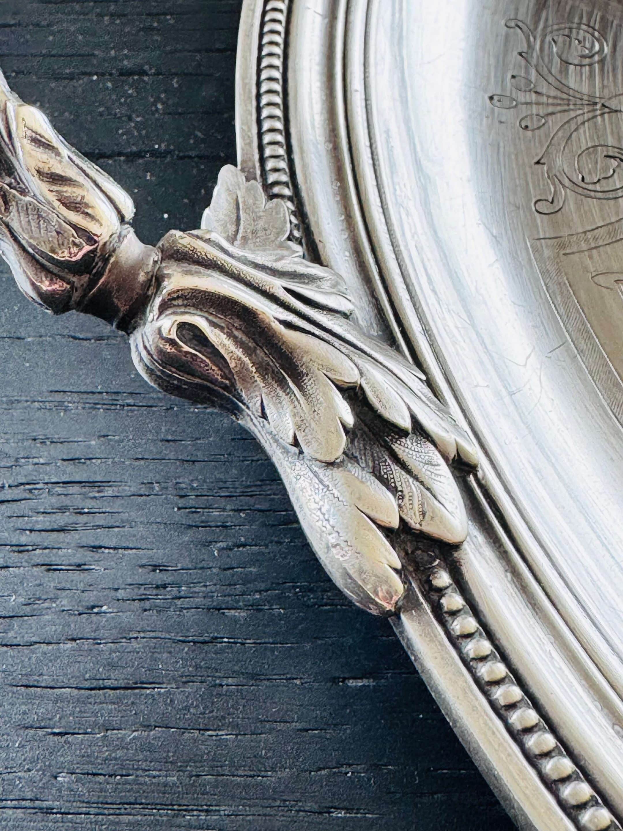 En bel état de conservation sans désargenture, ce ravissant plateau monogrammé sera du plus bel effet sur une jolie table.
